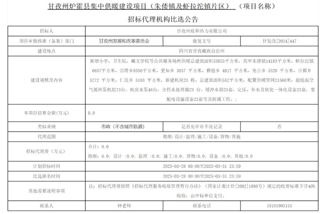 甘孜州炉霍县集中供暖建设项目(朱倭镇及虾拉沱镇片区)