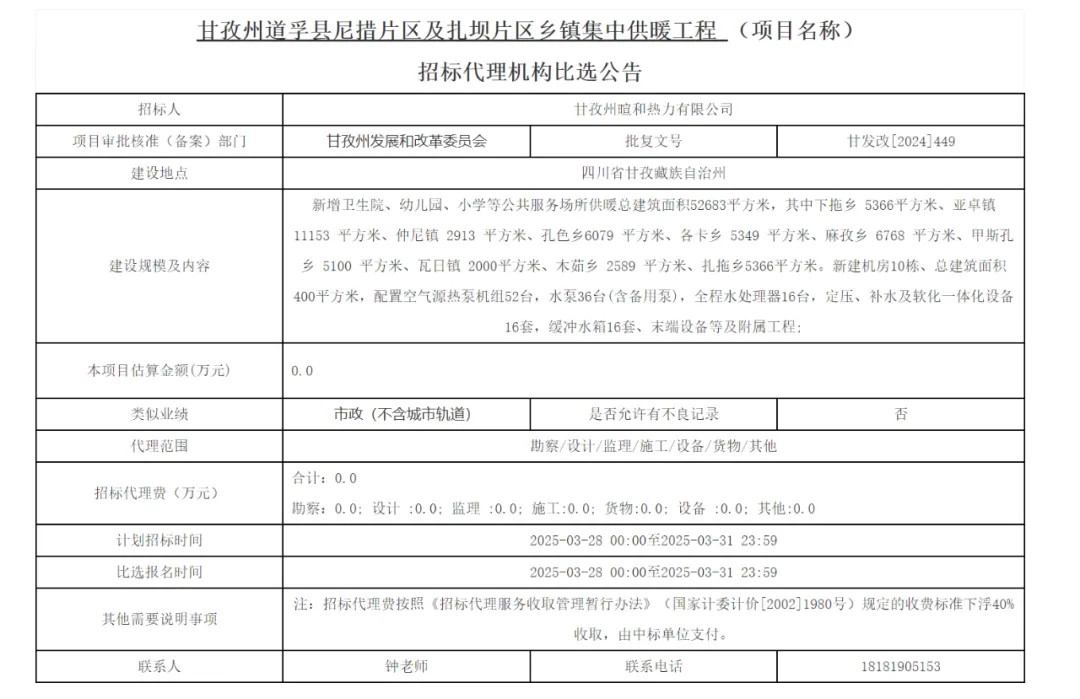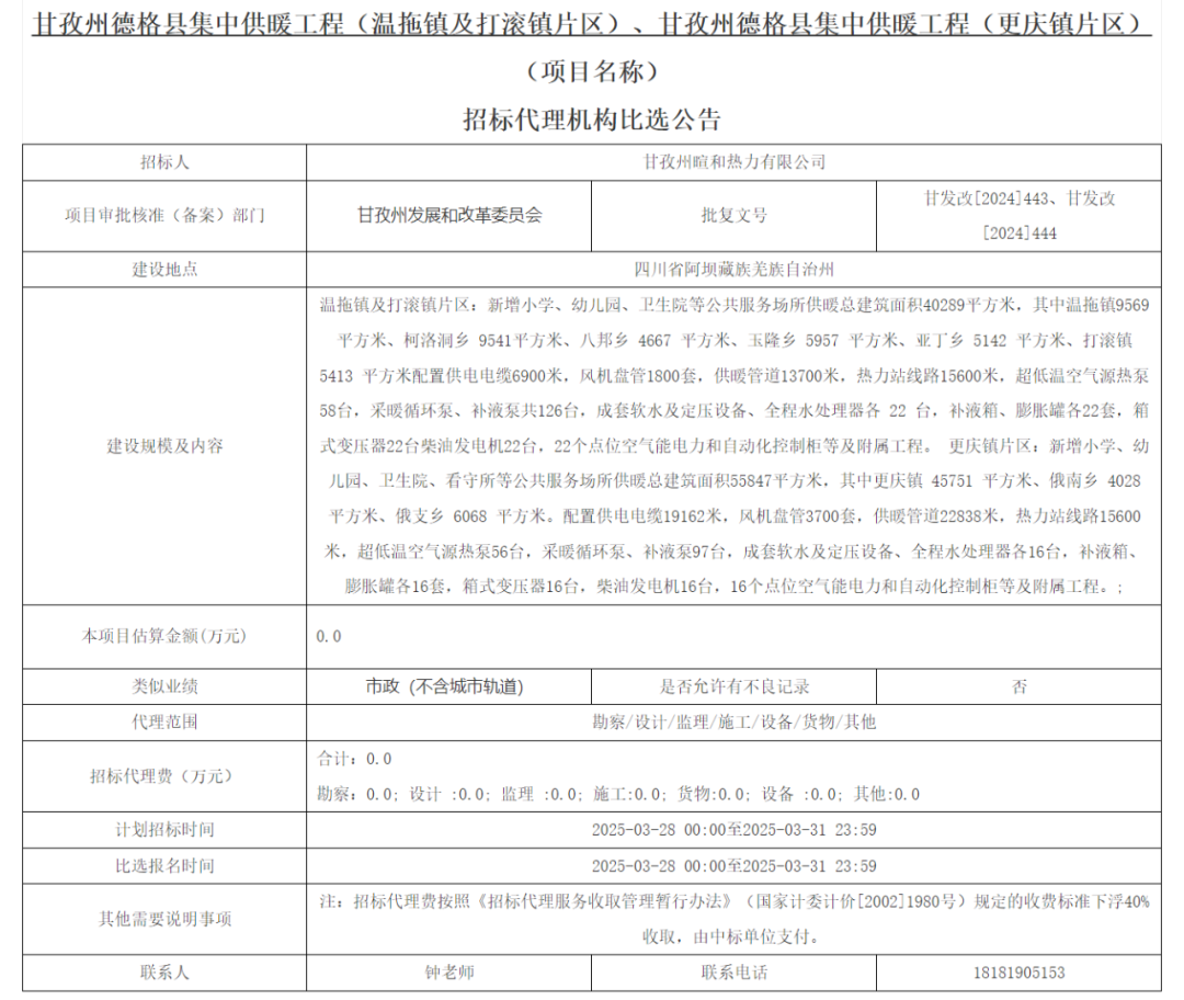甘孜州德格县集中供暖工程(温拖镇及打滚镇片区)、甘孜州德格县集中供暖工程(更庆镇片区)