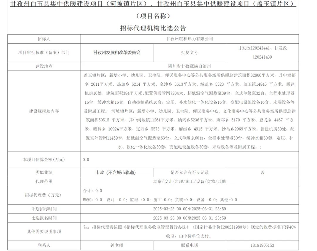 甘孜州白玉县集中供暖建设项目(河坡镇片区)、甘孜州白玉县集中供暖建设项目(盖玉镇片区)