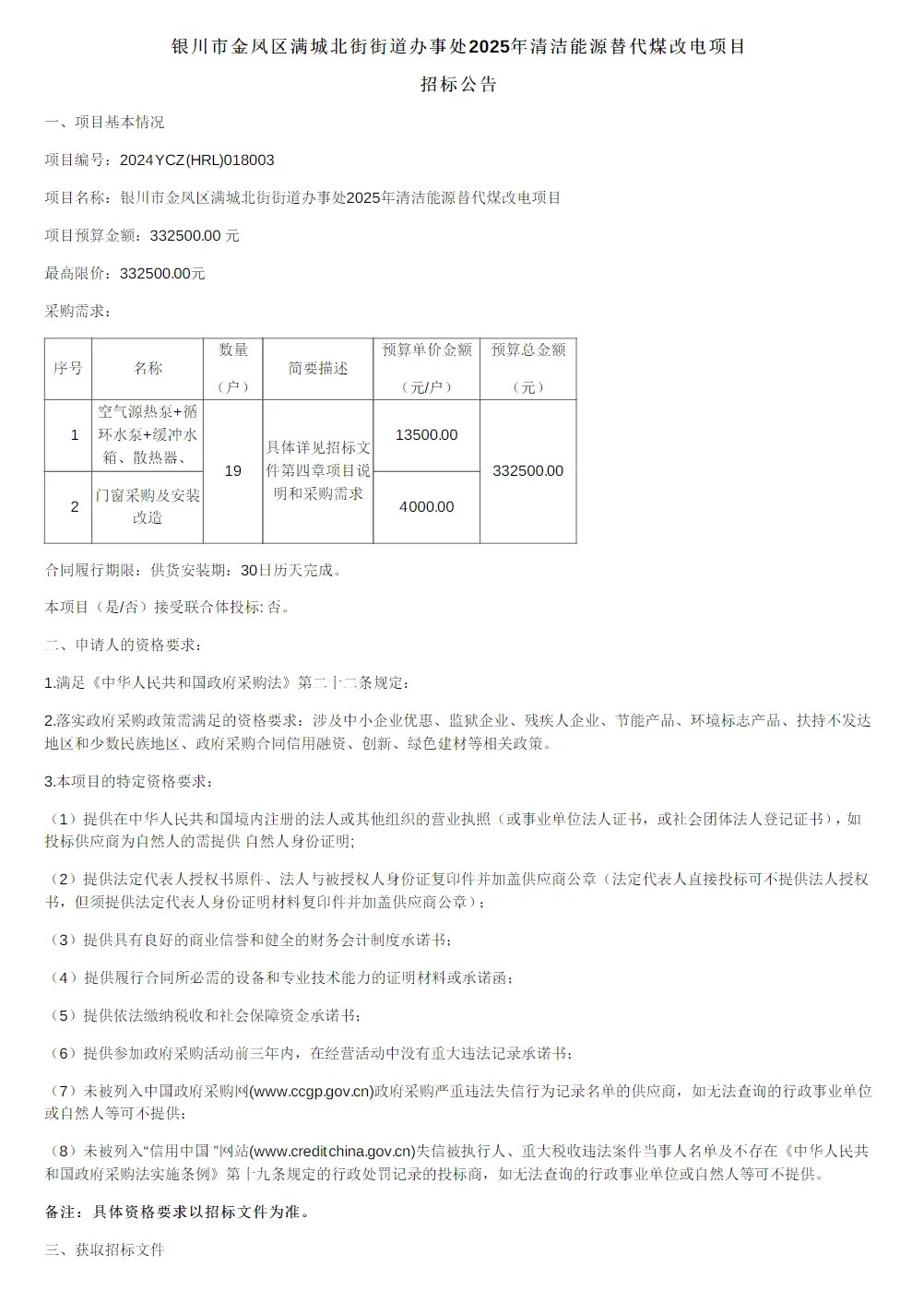 https://ctbpsp.com/#/bulletinDetail?uuid=c3e4dfdc-f236-4f84-8332-3507e7ebd3be&inpvalue=%E9%93%B6%E5%B7%9D%E5%B8%82%E9%87%91%E5%87%A4%E5%8C%BA%E6%BB%A1%E5%9F%8E%E5%8C%97%E8%A1%97%E8%A1%97%E9%81%93%E5%8A%9E%E4%BA%8B%E5%A4%842025%E5%B9%B4%E6%B8%85%E6%B4%81%E8%83%BD%E6%BA%90%E6%9B%BF%E4%BB%A3%E7%85%A4%E6%94%B9%E7%94%B5%E9%A1%B9%E7%9B%AE&dataSource=1&tenderAgency=