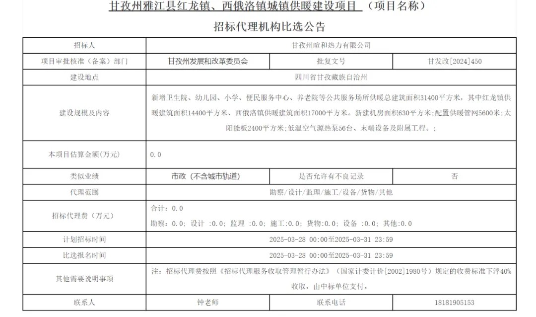 甘孜州雅江县红龙镇、西俄洛镇城镇供暖建设项目