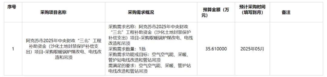 为便于供应商及时了解政府采购信息,根据《财政部关于开展政府采购意向公开工作的通知》(财库〔2020〕10号)等有关规定,现将阿克苏市林业和草原局2025年4月采购意向公开如下: