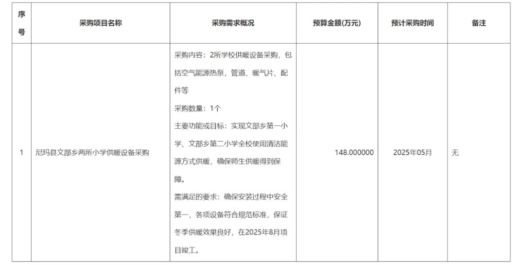 尼玛县2025年度政府采购意向公告(第10批)