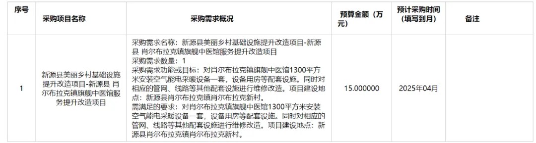 新源县肖尔布拉克镇人民政府2025年4月至5月政府采购意向