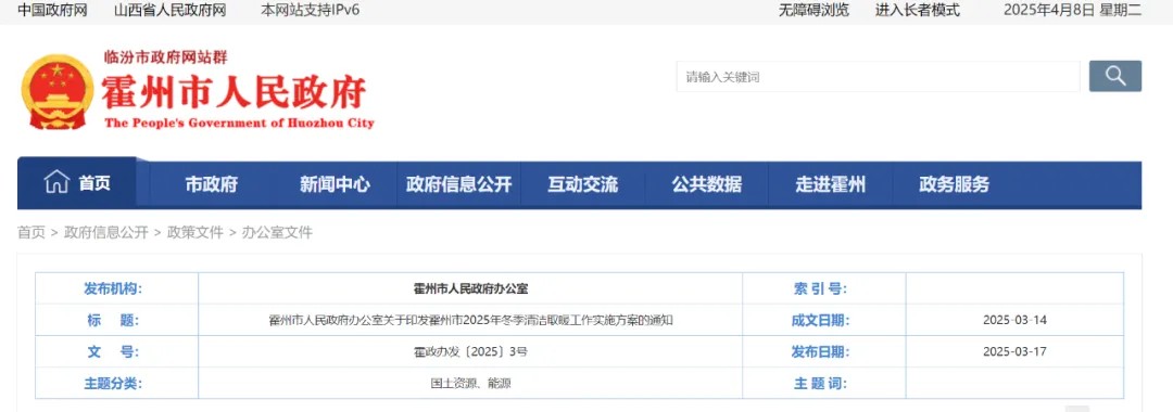 【图片解读】《关于印发霍州市2025年冬季清洁取暖工作实施方案的通知》